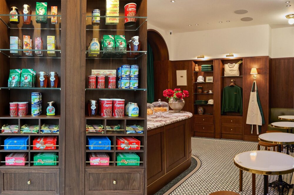 Café Leon Dore, their in-house breakroom, stands out as a captivating space that has garnered significant attention. Aligning with ALD’s nostalgic identity, the walls of Café Leon Dore proudly display an array of Greek coffees and confectionaries from Santis’s family’s home country. Additionally, it serves as another space to sell Café Leon Dore memorabilia, alongside its offerings of teas and coffees.